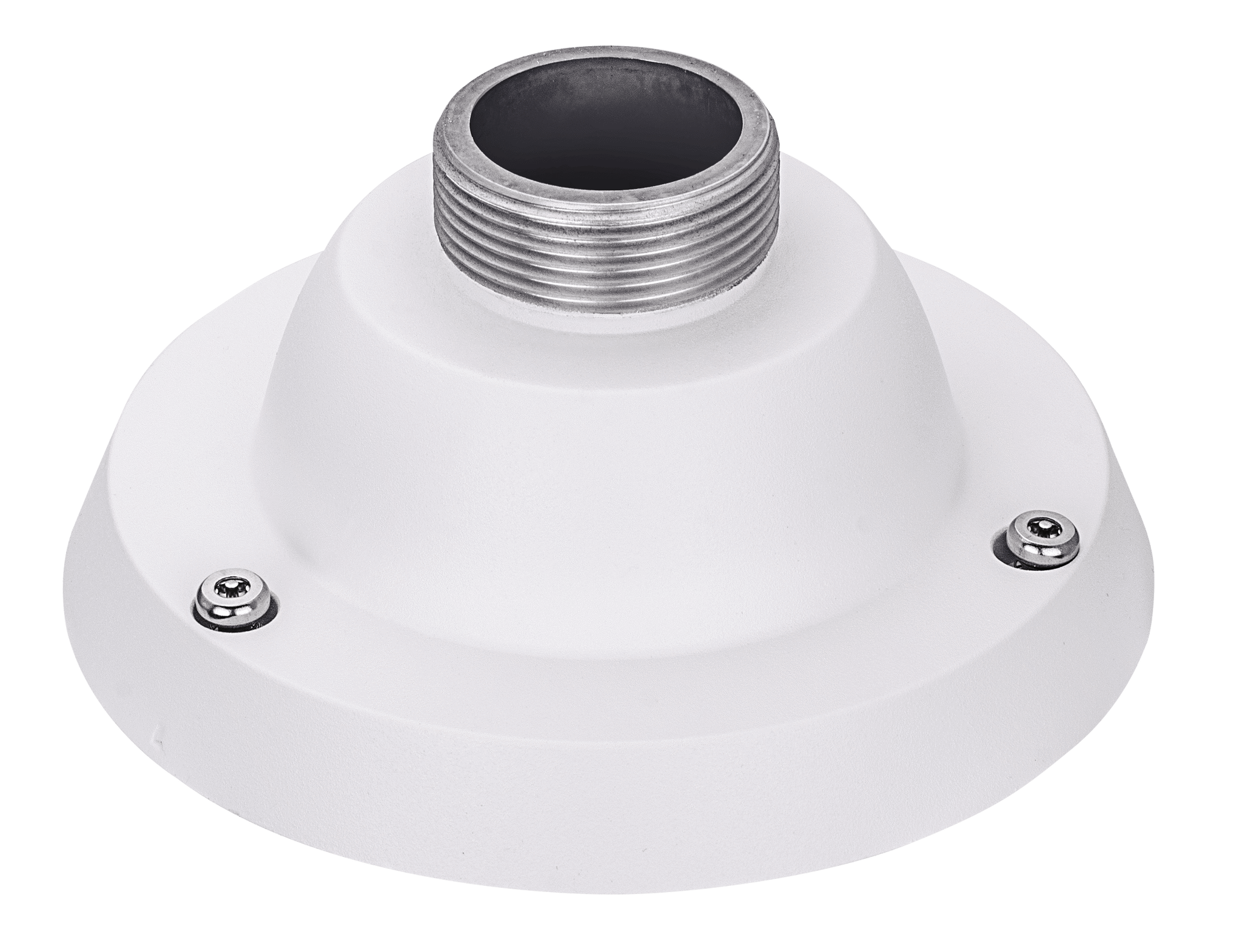 Es un adaptador de montaje en techo diseñado para cámaras PTZ, que permite una instalación segura y estética. Su principal función es proporcionar un soporte robusto, asegurando que las cámaras permanezcan estables y en la posición adecuada para optimizar el campo de visión. Los beneficios incluyen una mejor cobertura de vigilancia, mayor protección contra vandalismo al estar montadas en altura, y un diseño que oculta el cableado, contribuyendo a una apariencia más profesional. Además, facilita la instalación y ajustes de las cámaras según las necesidades específicas de cada entorno, mejorando así la eficacia del sistema de seguridad.