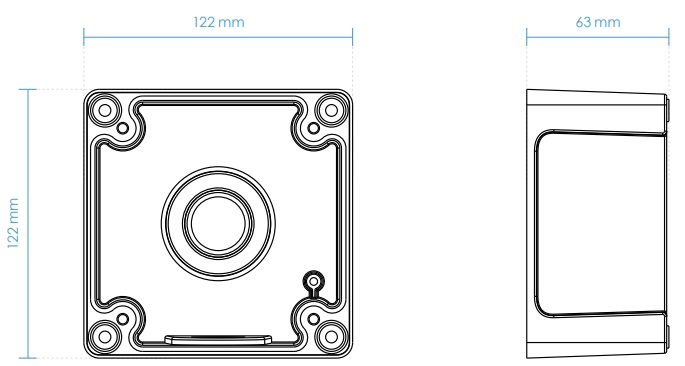- Dimensiones: 122 (largo) x 122 (ancho) x 63 (alto) mm