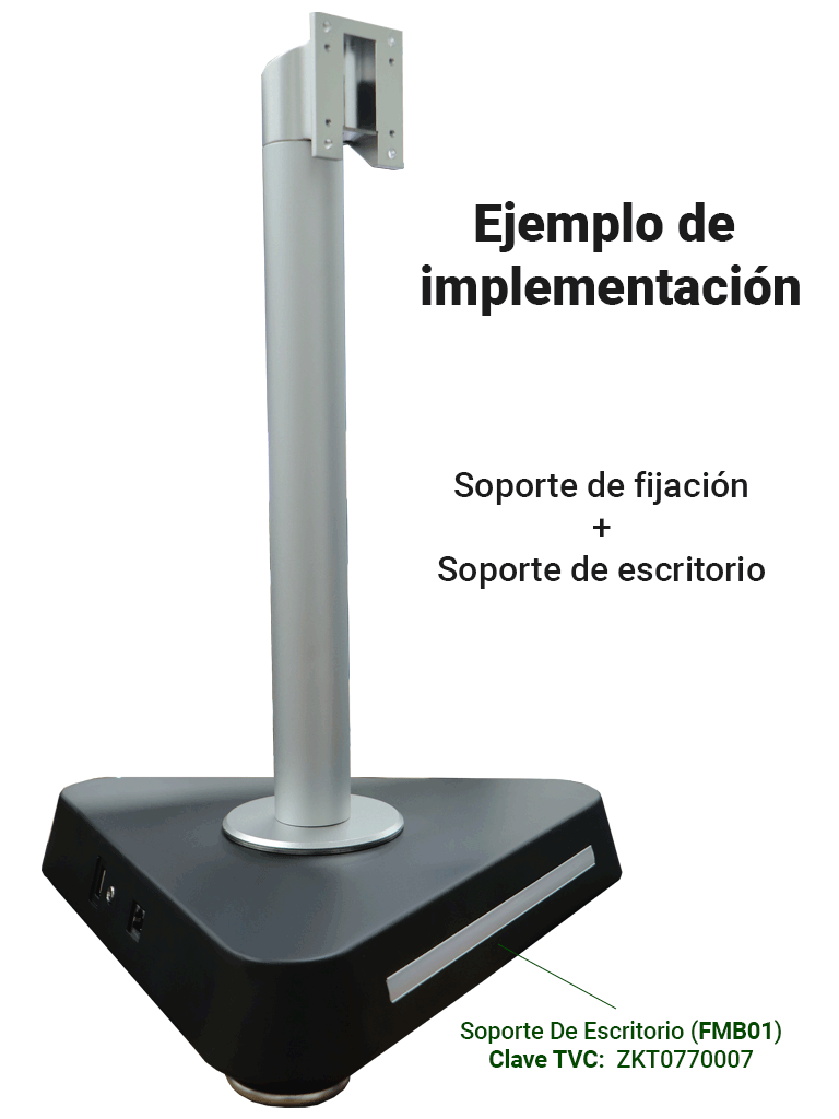 El soporte de fijación KJZ03 es un acceso para la colocación de equipos Visible Light (SpeedFaceV4L, MiniACPlus, SpeedFaceH5L, SpeedFaceV5L, FaceDepot7BL y ProFaceX) en superficies planas donde se permita una perforación del mismo, como una mesa de recepción, en la parte superior de los torniquetes, flap barrier, entre otro controles de acceso.