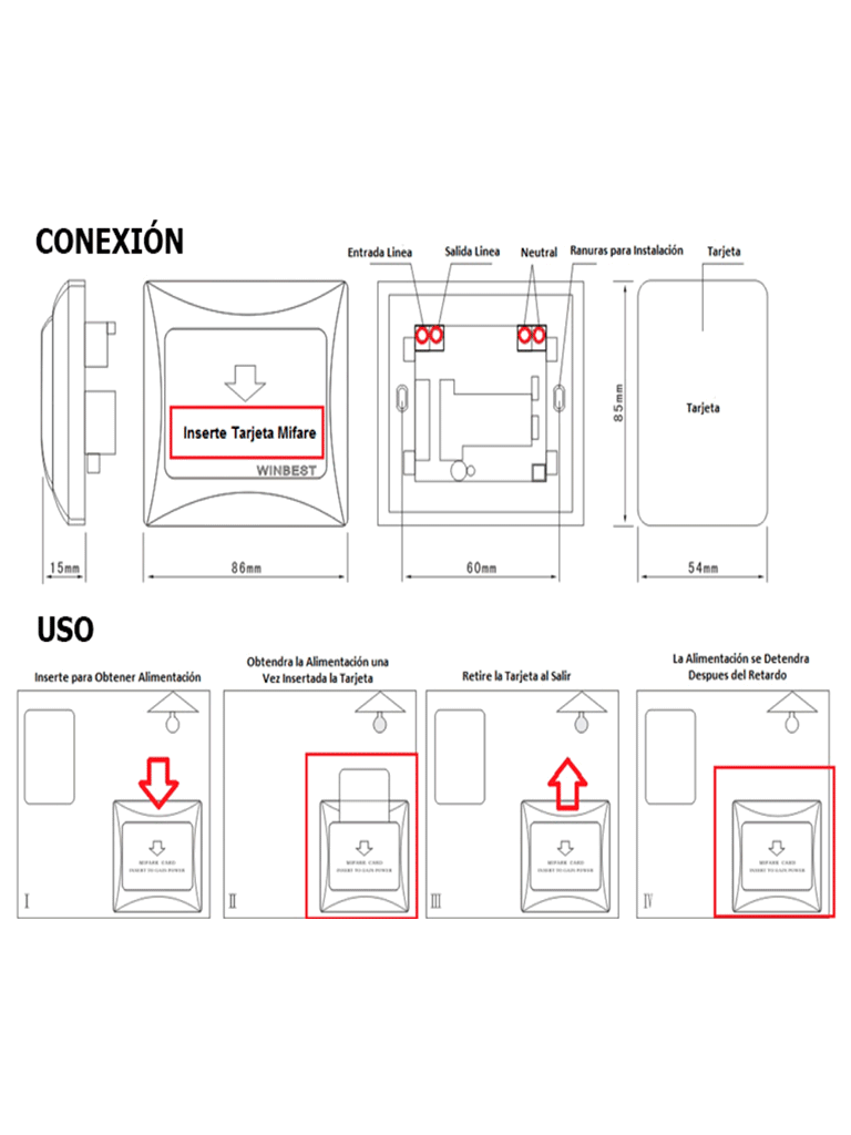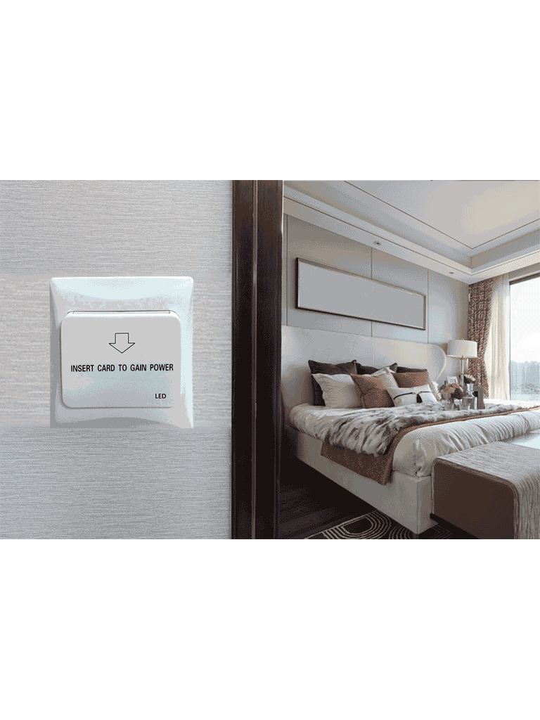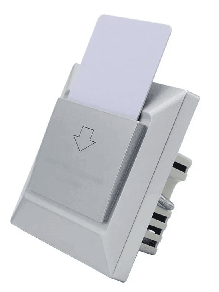Este módulo nos ayuda al ahorro de energía y a controlar el acceso al uso de la energía de una habitación de un hotel o departamento. Regularmente, se instala cercano a la puerta de su habitación en el interior.